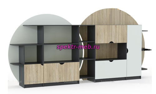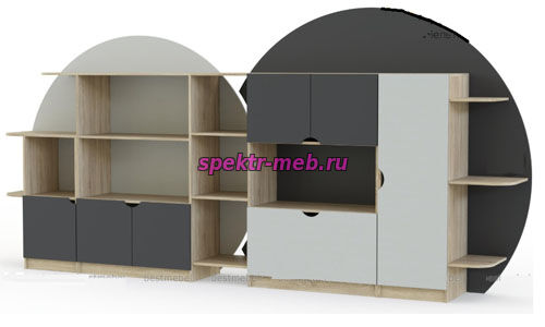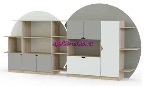 Компания СПЕКТР-М представляет новую коллекцию моделей игровых стенок и стеллажей, предназначенных для использования в детских садах и жилых помещениях. Изделия изготовлены из ламинированной древесно-стружечной плиты (ЛДСП) толщиной 16 мм в спокойных тонах, имитирующих древесину, а также в бело-серой гамме. По запросу возможно производство фасадов из ламинированной древесноволокнистой плиты (МДФ) толщиной 16 мм с использованием различных цветовых решений, включая красный, фисташковый, лаймовый, ярко-желтый и персиковый оттенки, а также другие цвета.