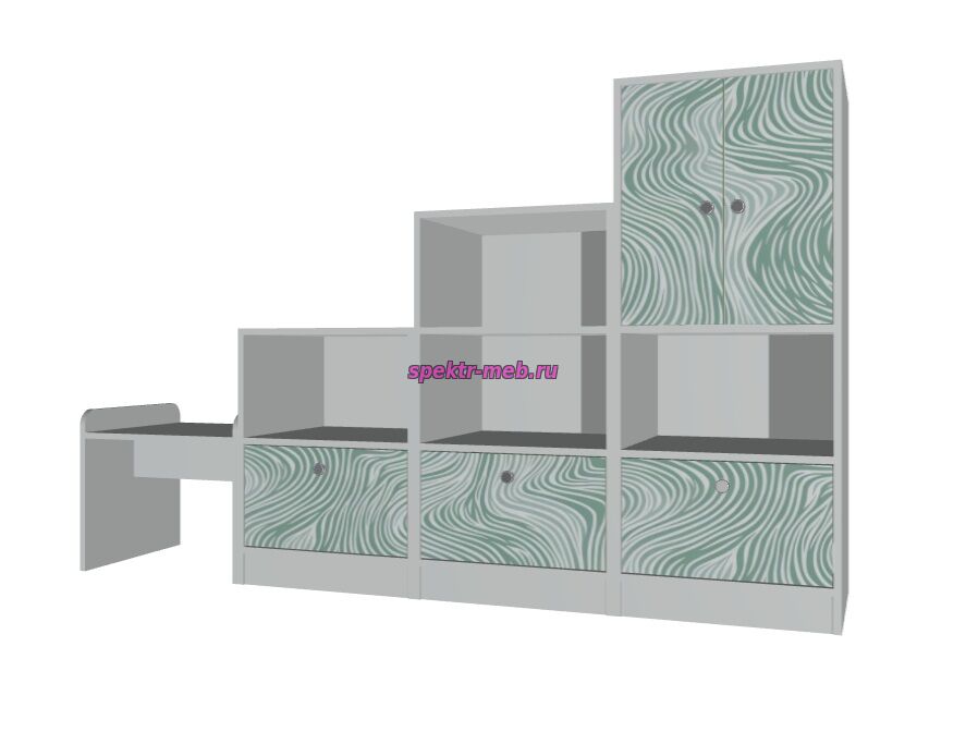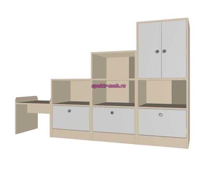 Предлагаем новую цветовую палитру для мебельных решений, ориентированных на использование в детских образовательных учреждениях и жилых пространствах. Палитра включает в себя спокойные древесные оттенки, такие как ЛДСП "Дуб молочный", "Ясень шимо светлый", "Бук Бавария" и "Серый"и др.